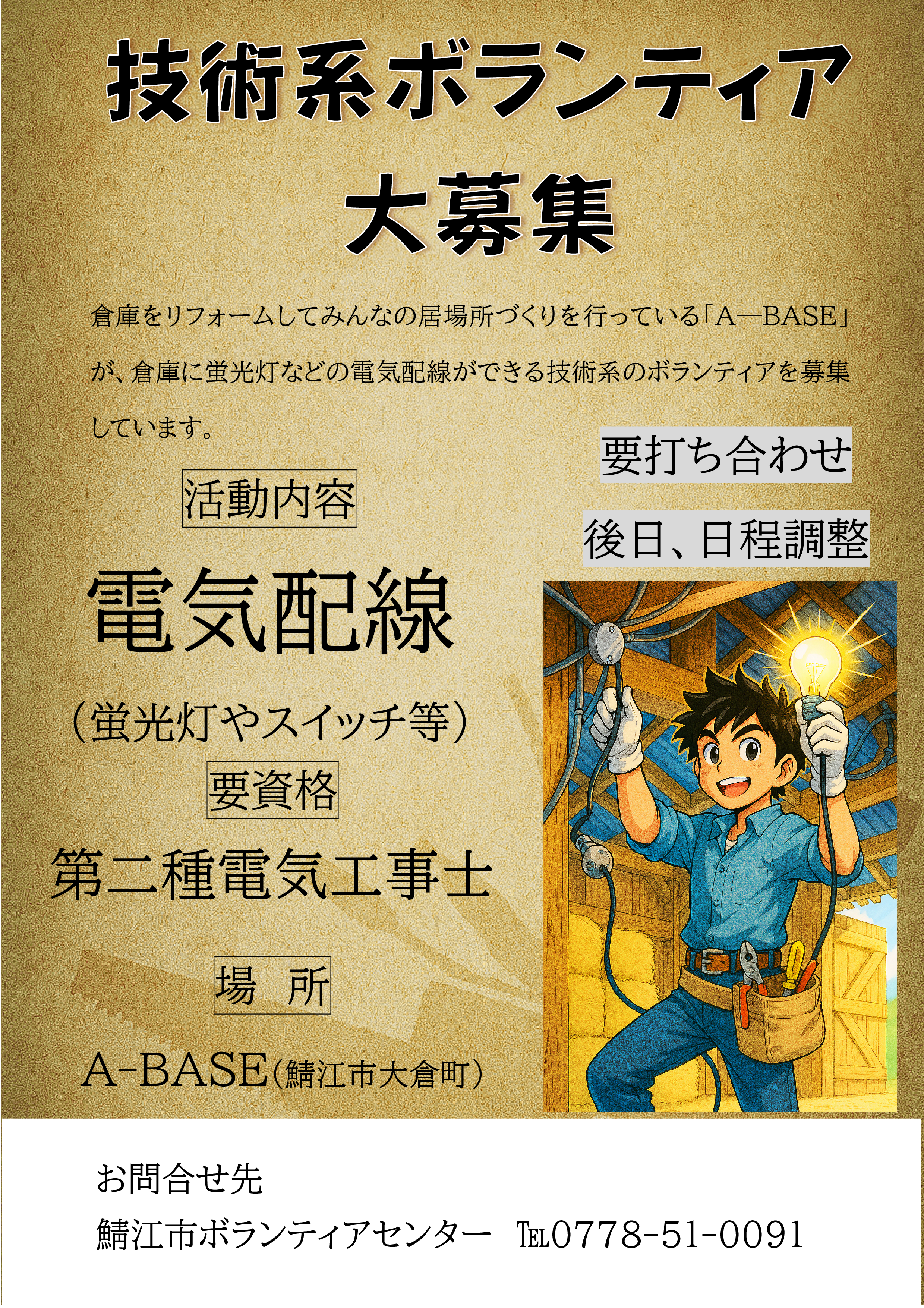 ÁÒ¸ËDIY¤Çµï¾ì½ê¤Å¤¯¤ê¤ò¹Ô¤Ã¤Æ¤¤¤ë¡ÚA-BASE¡Û¤¬³èư¤Î°ì´Ä¤È¤·¤ÆÁҸˤËÅŵ¤ÇÛÀþ¤ò¼êÅÁ¤Ã¤Æ¤¯¤ì¤ëµ»½Ñ·Ï¥Ü¥é¥ó¥Æ¥£¥¢¤òÊ罸¤·¤Æ¤¤¤Þ¤¹¡£