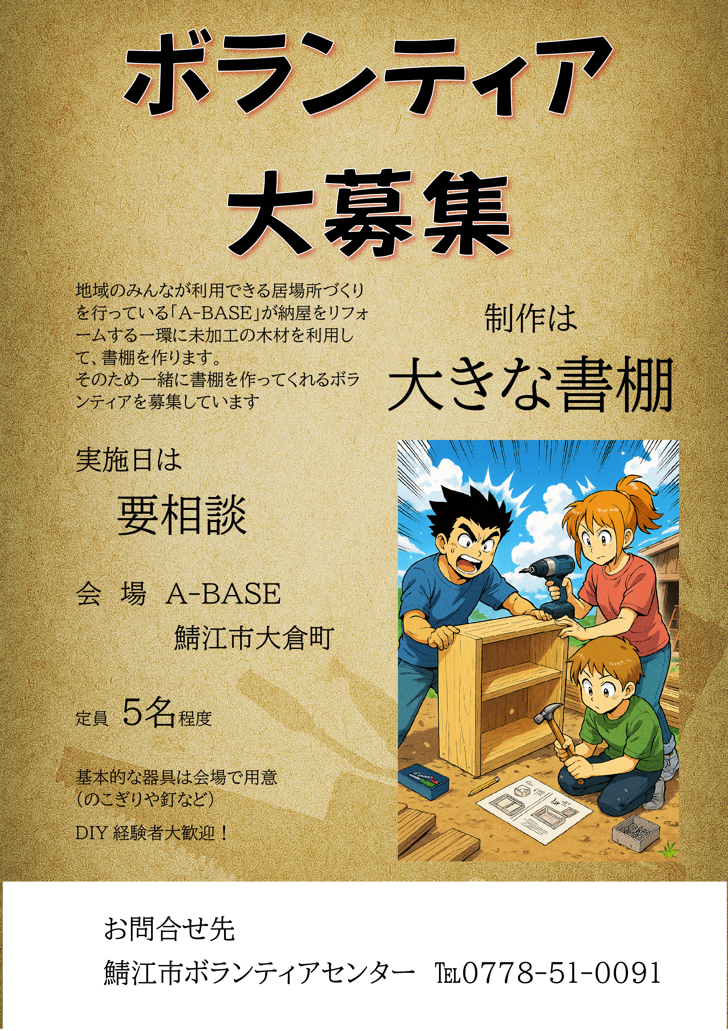 ÁÒ¸ËDIY¤Çµï¾ì½ê¤Å¤¯¤ê¤ò¹Ô¤Ã¤Æ¤¤¤ë¡ÚA-BASE¡Û¤¬³èư¤Î°ì´Ä¤È¤·¤ÆÂ礤ʽñê¤ò°ì½ï¤Ëºî¤Ã¤Æ¤¯¤ì¤ë¥Ü¥é¥ó¥Æ¥£¥¢¤òÊ罸¤·¤Æ¤¤¤Þ¤¹¡£